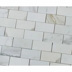 Top 10 👍 Rocky Point Tile Co Calacatta Gold Polished Marble Mosaic 2×4 Subway Tile, 12″x12″ 🥰