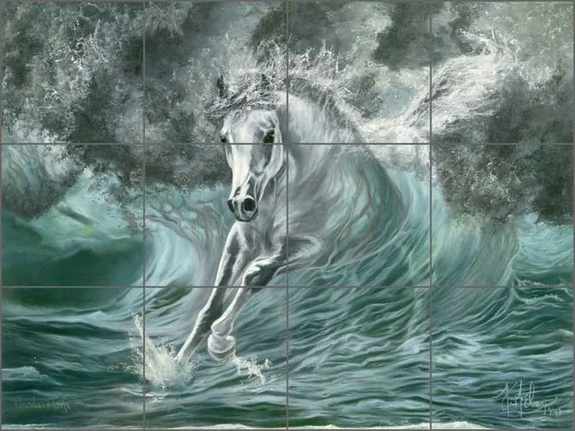 Ceramic Tile Mural on Architectural Grade Tiles w/Satin Finish. Perfectly suitable for a kitchen backsplash, behind a stove, in shower or other interior space. Individually handcrafted and made with highest quality materials and craftsmanship. Fusion Imaging Process imbeds artwork into tile surface; waterproof, fade resistant. 100% Quality and Satisfaction Guarantee. Ships unassembled.