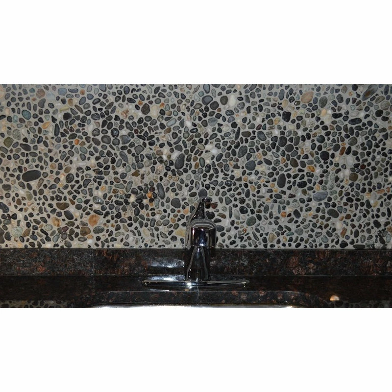 Beach pebbles, naturally tumbled by the sea, are used to create our Natural Pebble Tile line. Each stone for these mosaic pebble tiles are hand selected and adhered to a mesh backing for easy installation. Our unique interlocking system gives the appearance that each stone is hand set.
