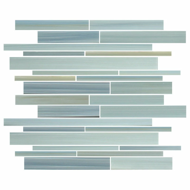Introducing our new Reflections linear glass mosaic tiles. A hand painted mix of soft greens, blues, ocher, and a touch of black. Each sheet is 12″ x 12″ and includes a complex mix of random rectangular glass pieces. Reflections is also available in a small subway mosaic. A great choice for a kitchen backsplash or accent wall in a bathroom. These tiles repeat every 6 inches making for a great accent strip for a shower or tub surround.