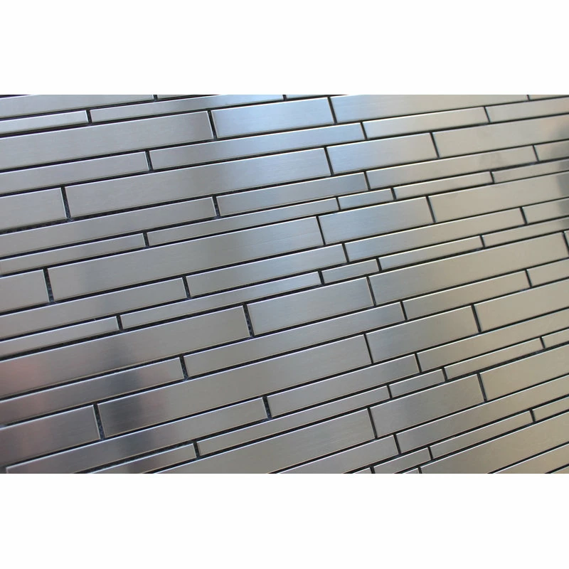 Make a bold statement in your kitchen with a stainless steel backsplash from Rocky Point Tile. Use these tiles over an entire wall or as a poppy accent in your next renovation! Tile pieces vary in length and make a great random mosaic.