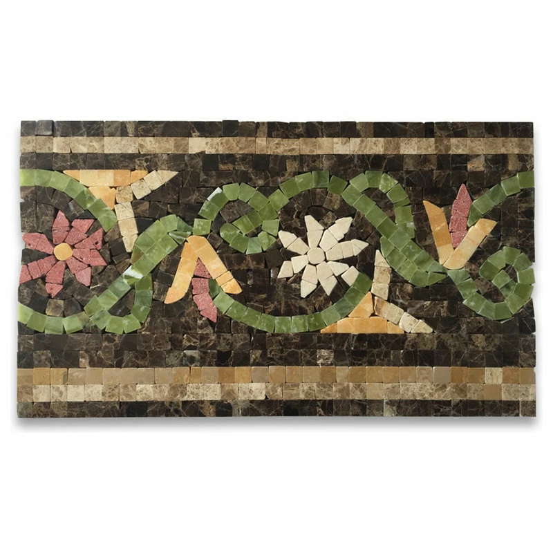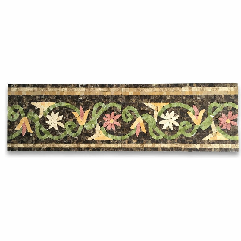 Brand new ๐ Stone Center Online Marble Mosaic Border Listello Tile Blossom Emperador 7.1×12 Polished, 1 Piece ๐