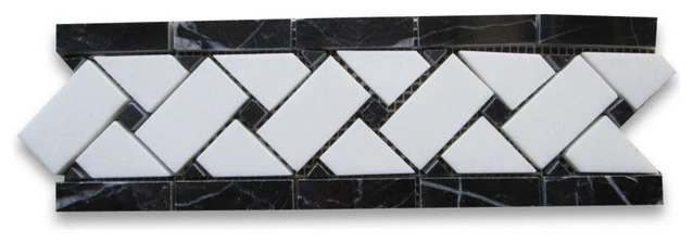 Premium Grade Basketweave White Thassos Marble Mosaic Border tiles. Greek Thassos White Pure White Marble Polished 4 x 12 Basket Weave Mosaic border Basketweave Mosaic Borders with Black Dots Listello Tiles are perfect for any interior/exterior projects. The Thassos White Marble Basketweave Mosaic Borders with Nero Marquina Black Dots can be used for a kitchen backsplash, bathroom flooring, shower surround, countertop, dining room, entryway, corridor, balcony, spa, pool, fountain, etc. Our Premium White Thassos Marble Basketweave Mosaic Borders with a large selection of coordinating products is available and includes hexagon, herringbone, brick mosaics, 12×12, 18×18, 24×24, subway tiles, moldings, borders, and more.
