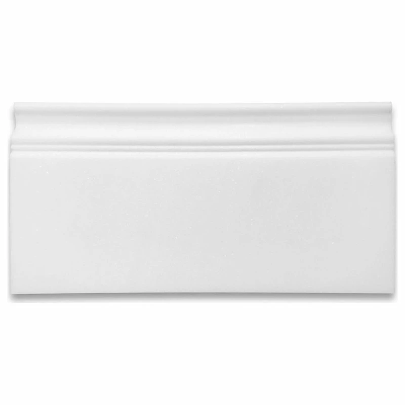 Premium Grade White Thassos Marble Skirting Baseboard Trim Molding Tiles. Greek Thassos White Pure White Crystal Marble Honed 6×12 Skirting Baseboard Trim Molding Wall and Floor Tiles are perfect for any interior projects. The 6×12 Thassos White Marble Skirting Baseboard Trim Molding tiles can be used for a kitchen backsplash, bathroom flooring, shower surround, dining room, entryway, spa. Our timeless Matte White Thassos Marble Skirting Baseboard Trim Molding tiles with a large selection of coordinating products is available and include arabesque, fish scale, penny round, herringbone, basketweave mosaics, 12×12, 18×18, 12×39, subway tiles, moldings, borders, and more.