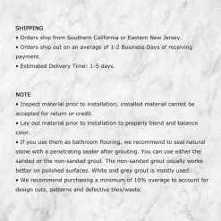 - Color: Thassos White Marble (a pure snow white marble with a brilliant small grain crystalline structure and color of refined sugar);