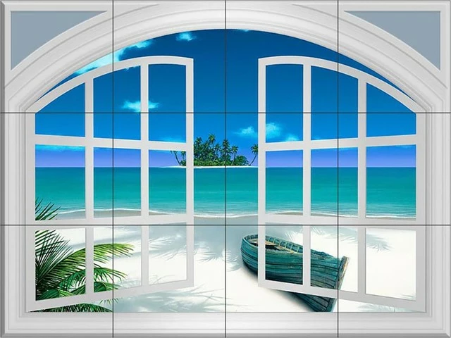 Buy 🌟 The Tile Mural Store (USA) Ceramic Tile Mural, Beach View Through A Window, DM, By David Miller 😀