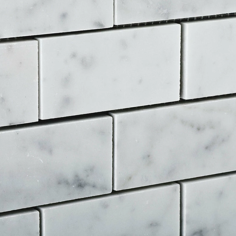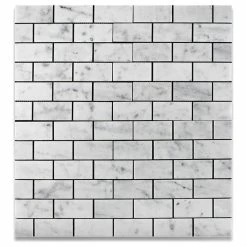 - Italian Carrara White Marble 2″ X 4″ Honed (Matte Finish) Subway Brick Mosaic Tile.